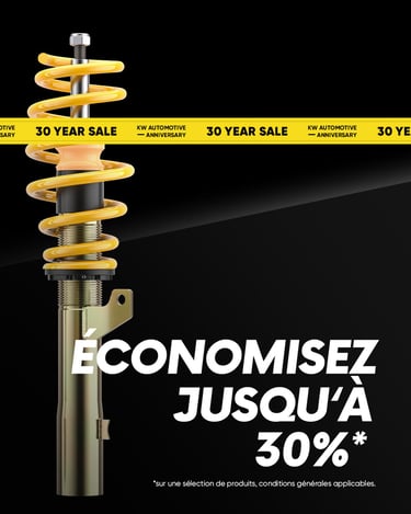 Pour célébrer ses 30 ans, KW Automotive Group lance une grande opération promotionnelle sur l’ensemble de ses marques (KW, ST Suspensions, AP Suspensions, REIGER Suspensions et BBS), avec des remises exceptionnelles allant jusqu'à -30%. Du jamais vu chez KW !